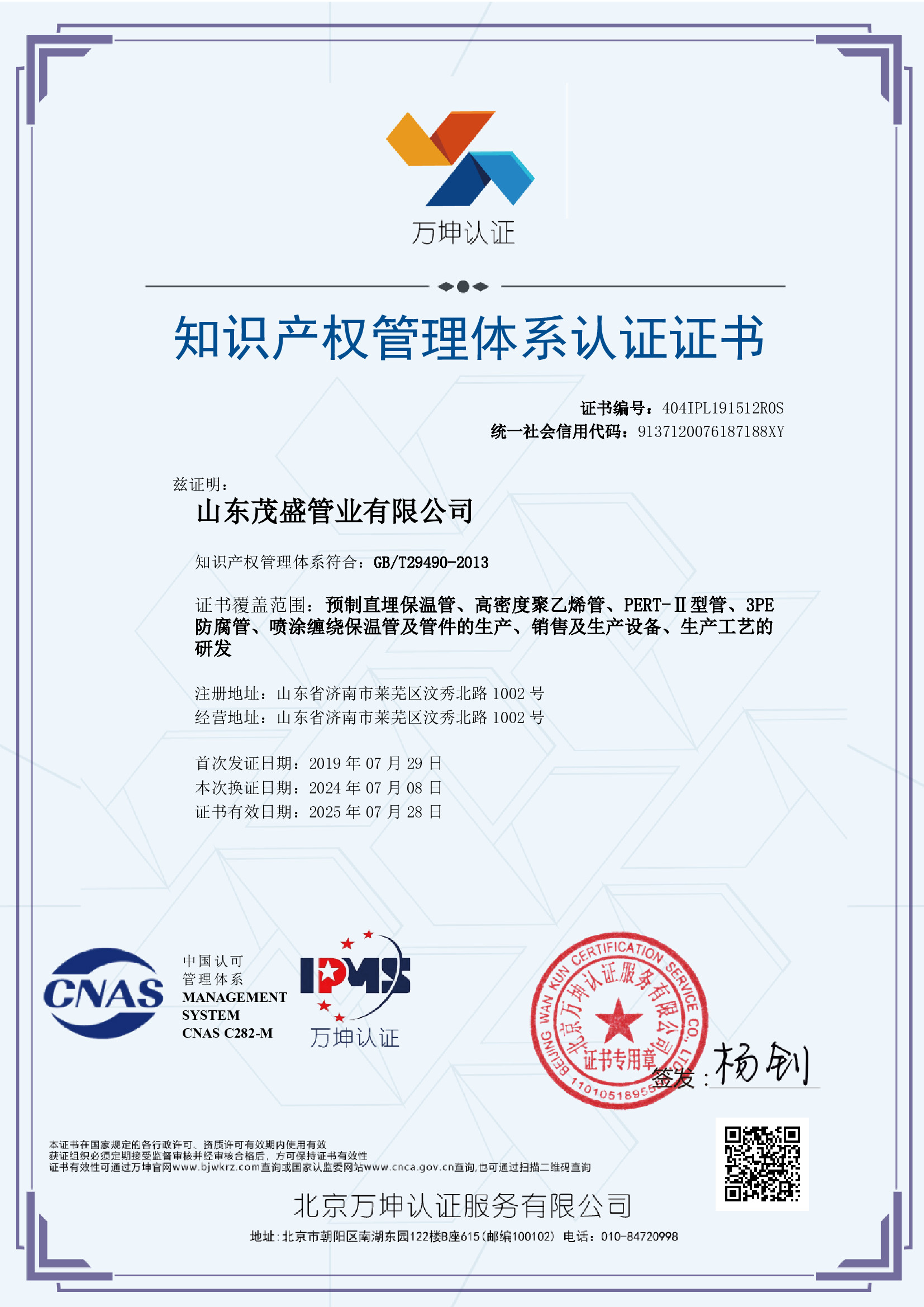 知識(shí)產(chǎn)權(quán)管理體系認(rèn)證證書