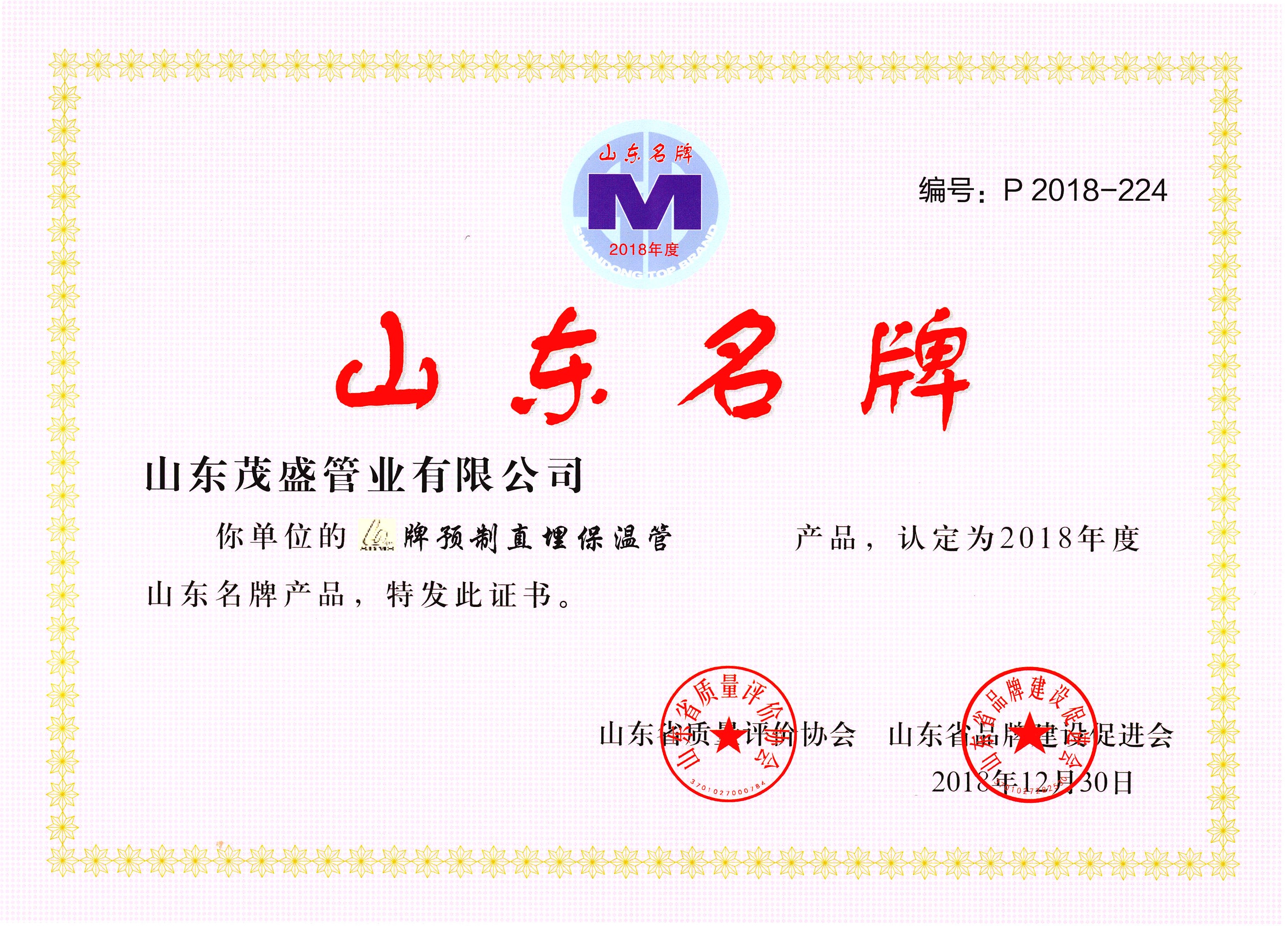 根據(jù)《山東名牌認(rèn)定管理辦法》(魯質(zhì)強(qiáng)辦發(fā)〔2018〕4號(hào)),山東省質(zhì)量強(qiáng)省及品牌戰(zhàn)略推進(jìn)工作領(lǐng)導(dǎo)小組辦公室委托第三方機(jī)構(gòu)組織開(kāi)展了2018年度山東名牌產(chǎn)品和山東省服務(wù)名牌認(rèn)定工作。按照“科學(xué)、公開(kāi)、公正、公平”的原則,在單位自愿申報(bào)的基礎(chǔ),經(jīng)資格核查、材料(網(wǎng)絡(luò))認(rèn)定、現(xiàn)場(chǎng)(暗訪)核查、用戶抽樣調(diào)查、質(zhì)量信用評(píng)價(jià)、征求有關(guān)部門(mén)意見(jiàn)等認(rèn)定環(huán)節(jié),我公司所生產(chǎn)的節(jié)能保溫管被認(rèn)定為山東名牌產(chǎn)品。